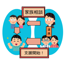 支援の中心はお子さんに移行しますが、必要に応じて家族相談も継続し、家族・支援者が協力してお子さんをサポートします。